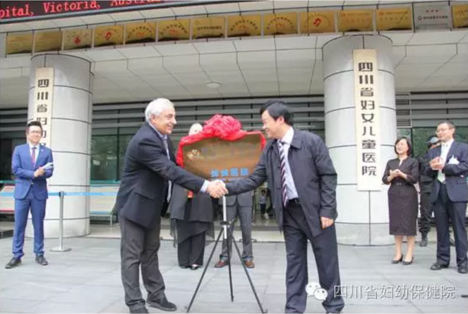 院长张刚(左)取维多利亚州卫生部国际事务部从任琳达·克里斯汀(左)配合签订《中国四川省妇长保健院取维多利亚州皇家妇女病院合做谅解备忘录》院长张刚(左)取维多利亚州皇家儿童病院国际部总监安德鲁·科恩伯格(左)配合签订《中国四川省妇长保健院取维多利亚州皇家儿童病院合做谅解备忘录》院长张刚(左)取维多利亚州皇家儿童病院国际部总监安德鲁·科恩伯格(左)配合揭牌
